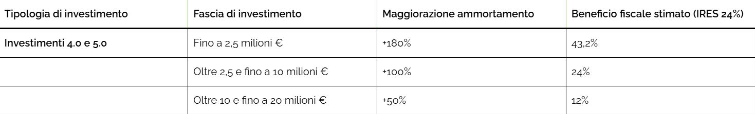 • beneficio fiscale stimato con IRES al 24%: 43,2%
